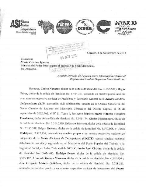 libertad sindical y contra la clase trabajadora venezolana, de las que se tenga